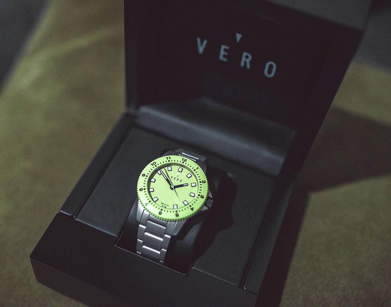 The Vero Open Water 38 swell is not your average-looking watch; the bold yellow/green face is not something that would work for every occasion. First and foremost, it is a timepiece that has been designed for the active consumer – it looks its absolute best when paired with sporty-looking clothing (outdoor adventure gear or even gym wear). That said, it can still look good with casual attire if paired correctly. Just remember to take advantage of the vibrant facia colour to complement your outfit choices.
